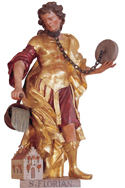 Florians Statue ist ein Hoffnungsbild des Glaubens. Die Last ist leicht geworden, wie einen Ball trägt er den Stein der Peiniger. Das erinnert an ein Wort Jesu im Matthäusevangelium: Kommt alle zu mir, die ihr euch plagt und schwere Lasten zu tragen habt. Nehmt mein Joch auf euch und lernt von mir, denn mein Joch drückt nicht, und meine Last ist leicht (Mt 11,28ff). So wurde Florian auch zum Fürsprecher für alle Lasten der Menschen.